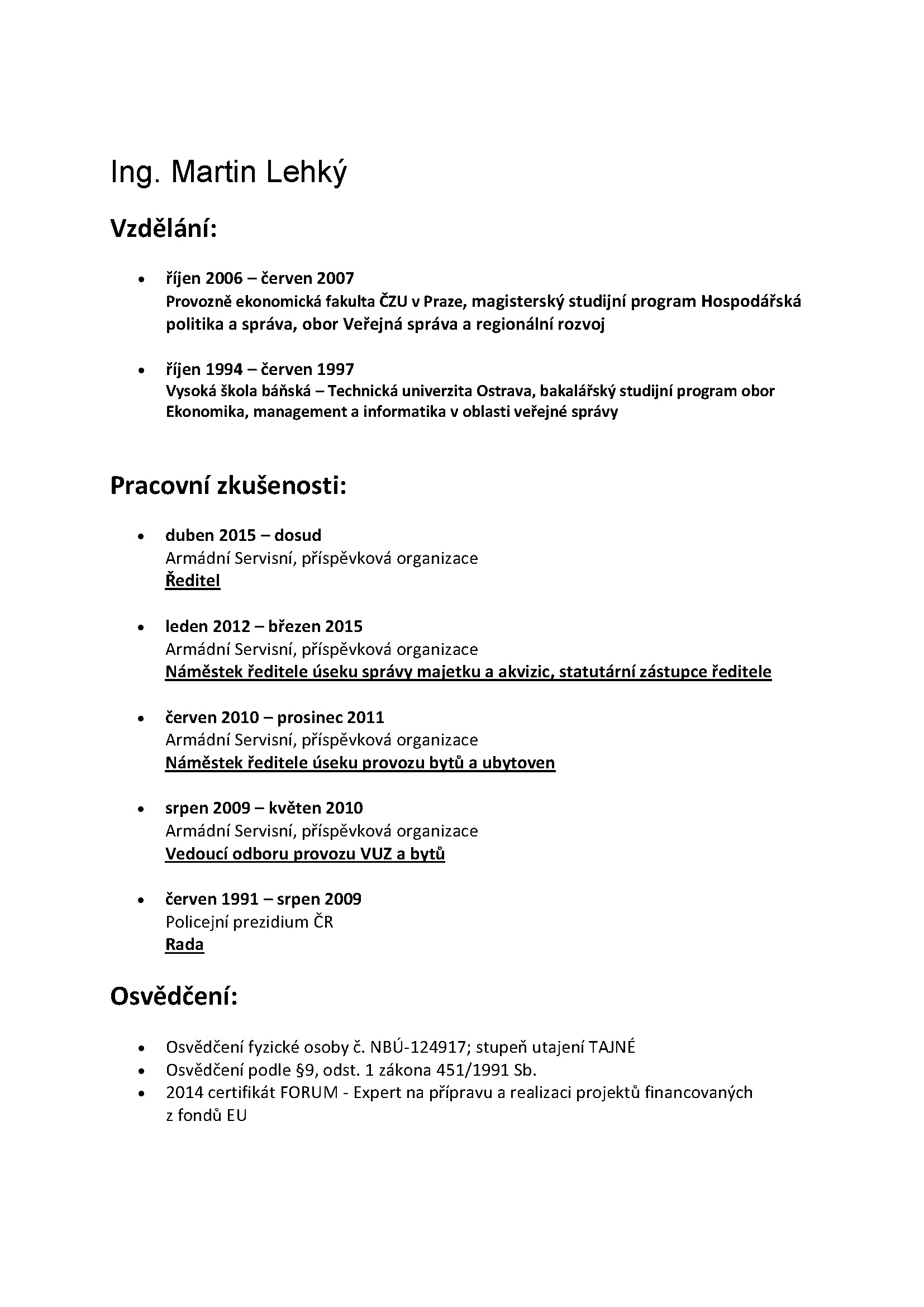 Statutární zástupce organizace - ředitel - Ing. Martin Lehký.